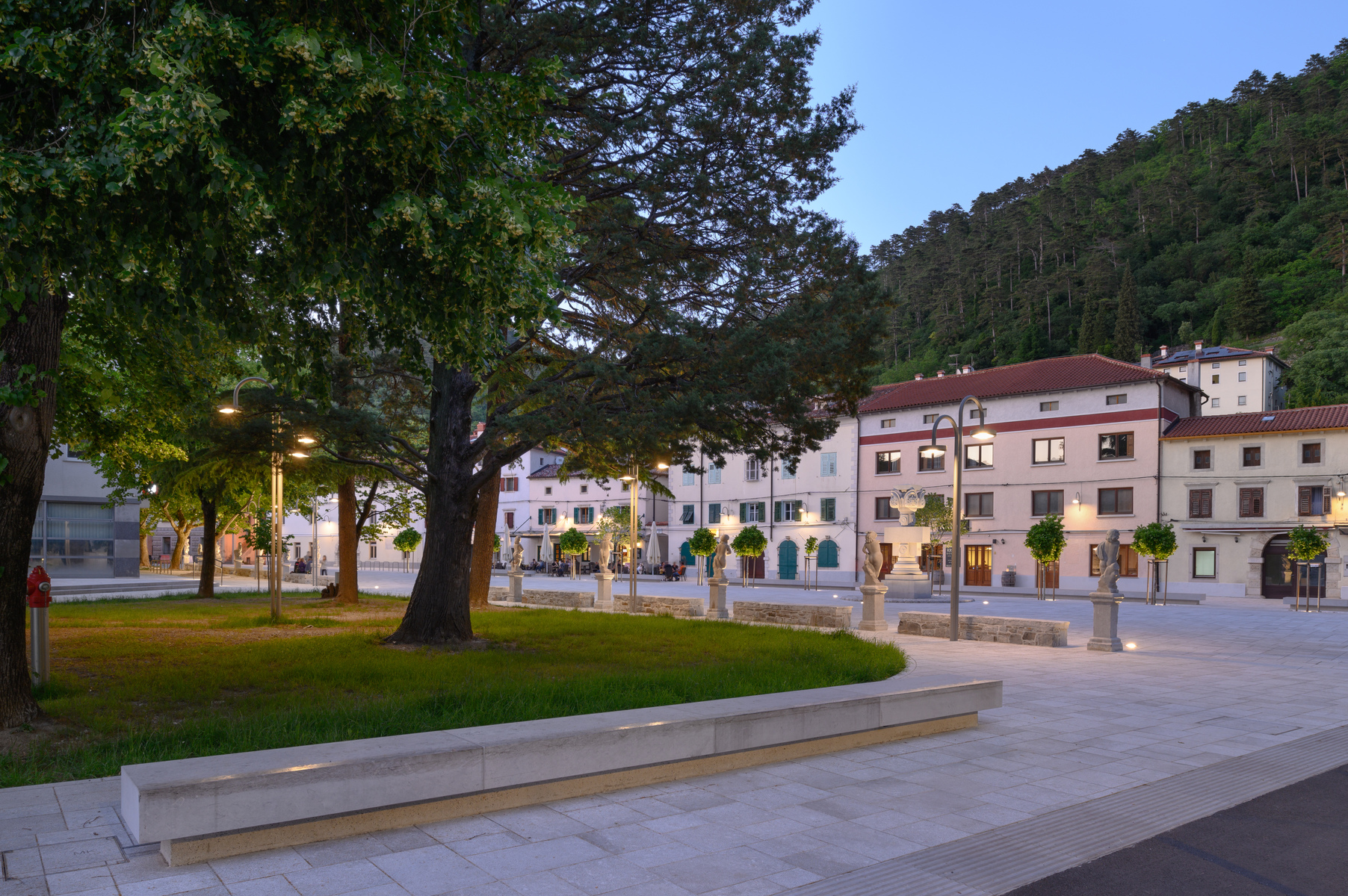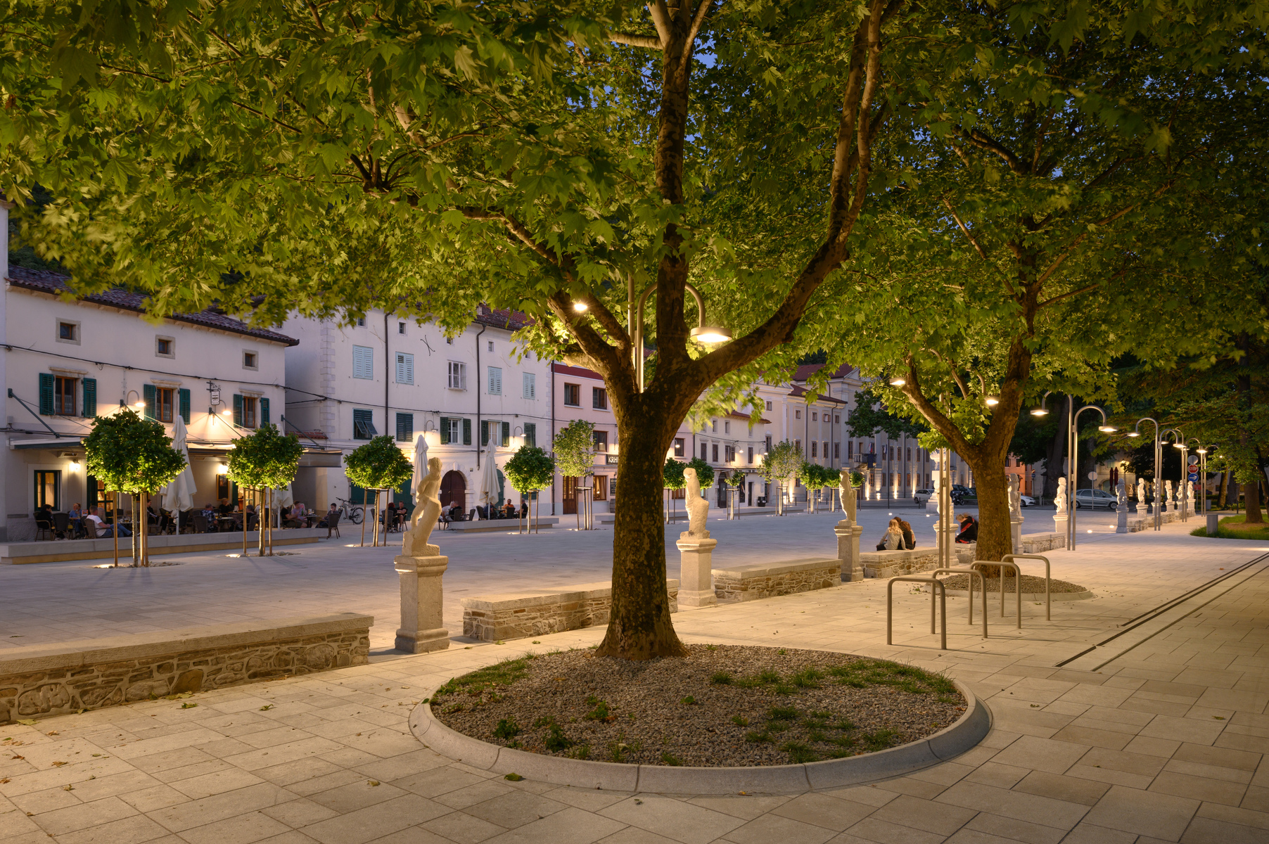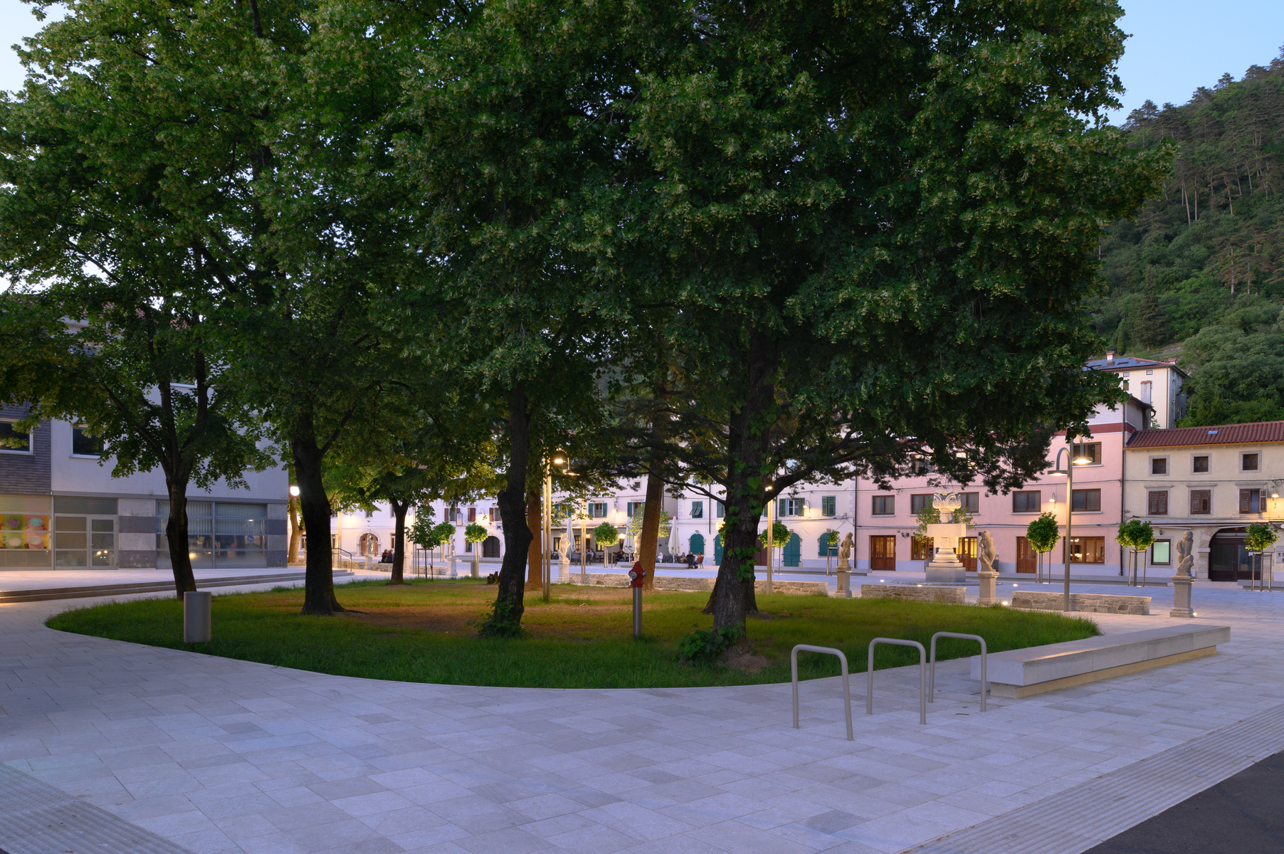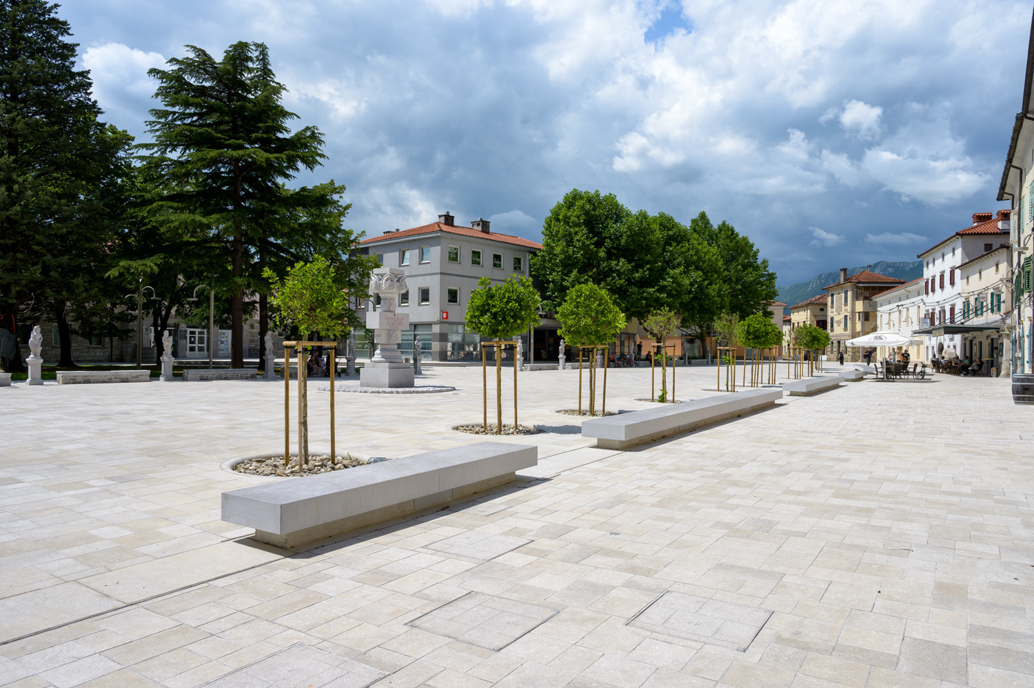 Uporaba avtohtonega kraškega kamna daje trgu materialno in simbolno težo. Gre za kamen, ki je stoletja sooblikoval arhitekturo širšega prostora in je navajen burje, sonca in časa. Detajli tlakovanja – v stikih, robovih in prehodih – razkrivajo premišljeno razumevanje prostora in potrjujejo arhitekturno načelo, da se smisel celote razkrije prav skozi natančno oblikovanje detajlov.