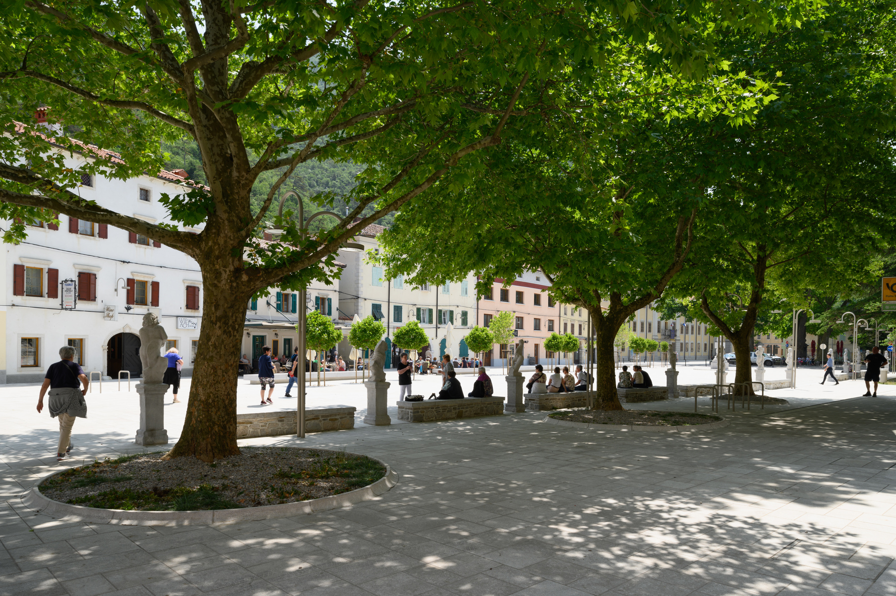 Tam, kjer se je še nedolgo nazaj nahajalo veliko parkirišče, se danes nahaja velik, z avtohtonim kamnom tlakovan mestni trg. Namesto prostora, kjer so se ustavljali avtomobili, se danes na trgu ustavljajo in družijo ljudje.