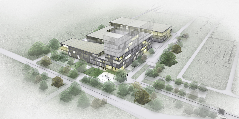 Fotonapetostni moduli so na fasade objektov vgrajeni tako, da postanejo vitalni del arhitekturne zasnove. Koncept celotnega objekta tako temelji na igri različno nagnjenih fotonapetostnih modulov in steklene dvoslojne fasade z vgrajenimi senčili. Zunanja podoba objekta je tako posledica koriščenja obnovljivih virov energije in pametne zasnove fasadne opne, ki temelji na naravnem zračenju in senčenju steklenih površin.